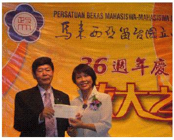 會專程飛往吉隆坡出席並致贈獎勵金馬幣壹仟令吉(下圖),以表達台北總會對