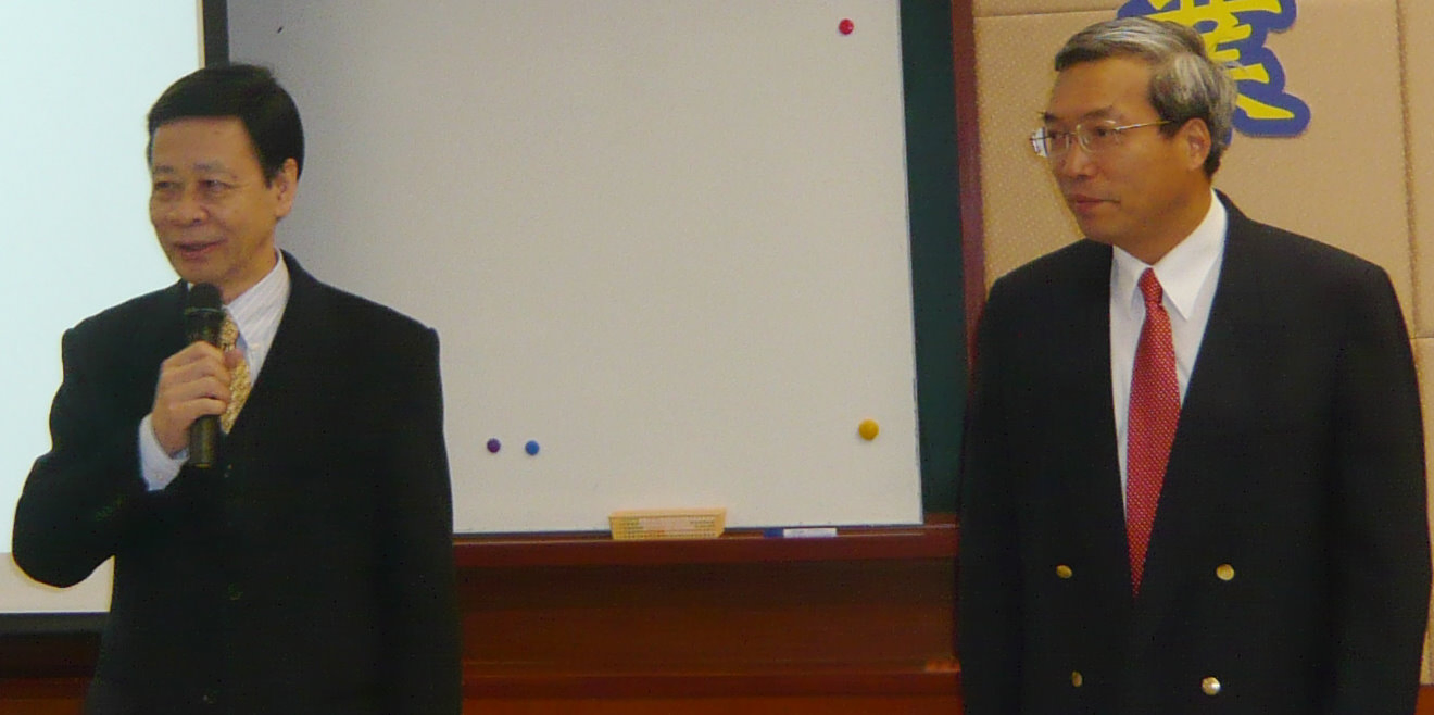 媒董事長)主講二○一○年台股投資新展望,由本會前總幹事鄭安國(圖左)介